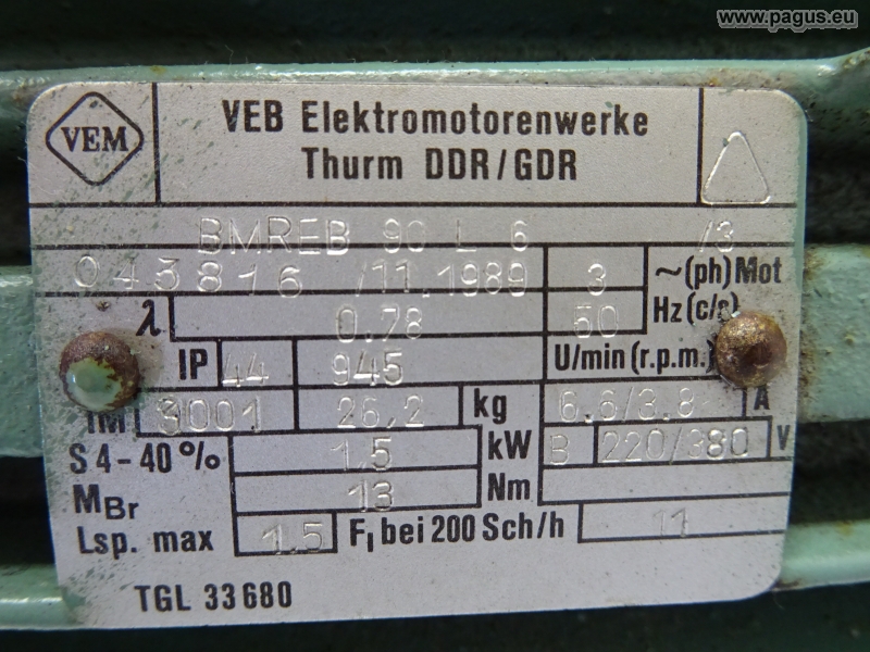 Drehstrom- Elektromotor, mit Fremdlüfter