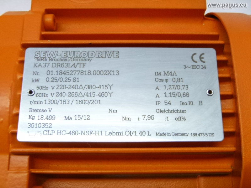 Motor: 0,37 KW