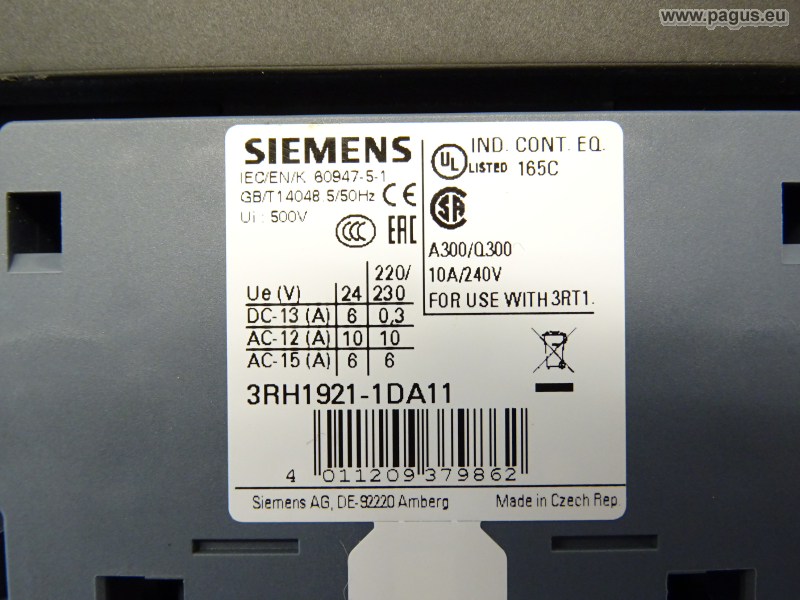 2x auxiliary switches 3RH1921-1DA11,each 1 make contact, 1 break contact