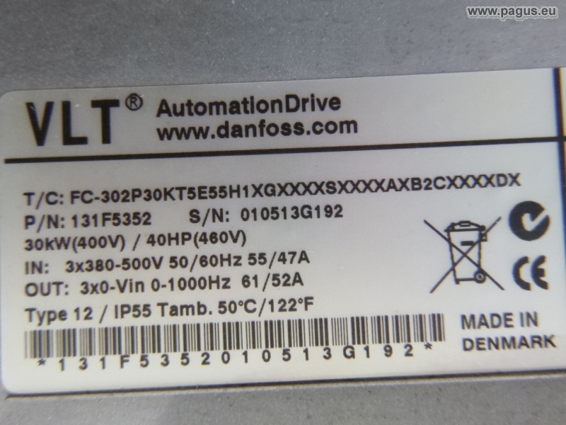 U Input: 380 - 500 V 3AC, 50 / 60 Hz, 55 / 47 A