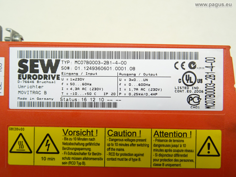 U Output: 0 - U Input 3AC, 0 - 600 Hz, 1,7 A ( bei 230 V )