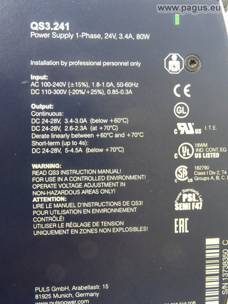 Sekundär: 24 - 28 V DC 3,4 - 3,0 A