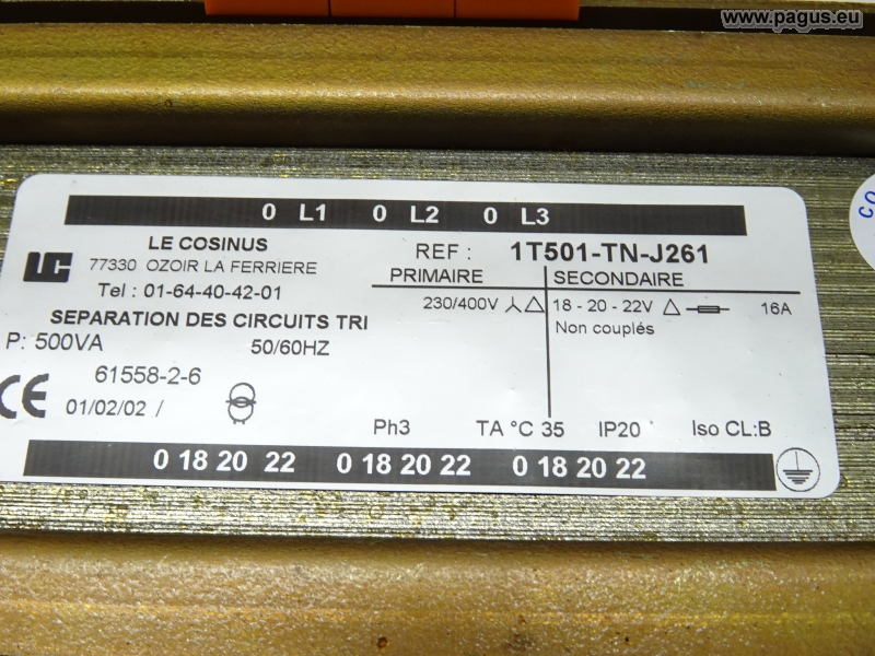 Sekundär: 3x 90 V 16 A, 3x 19 V, 9 A, 1x 110 / 220 V, 8 / 3 A