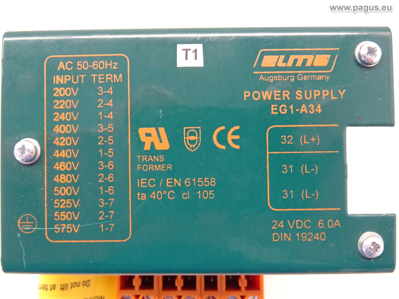 Primärspannung: 230 V 1AC 2,4 A, Sekundärspannung: 42 V 1AC 11,9 A