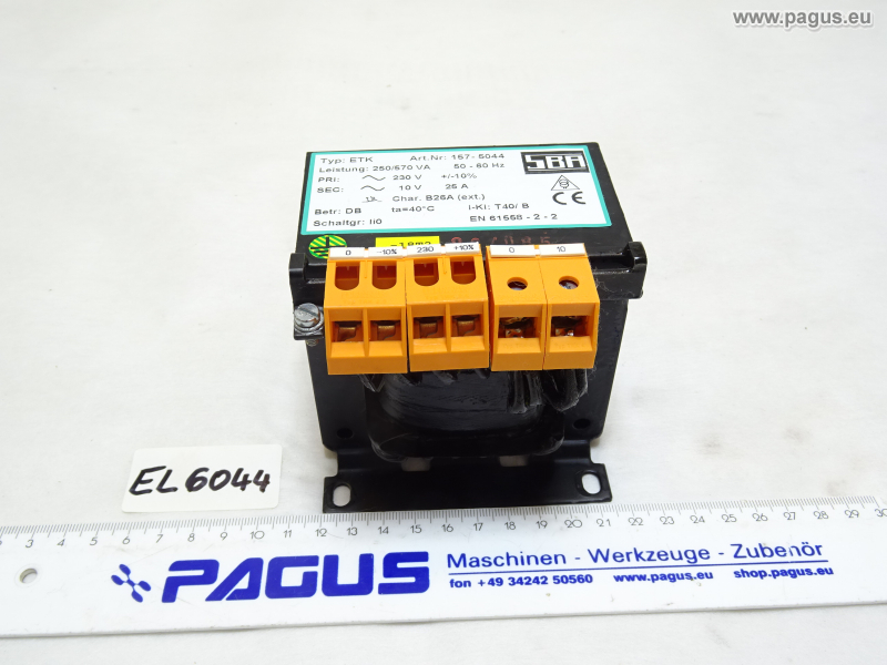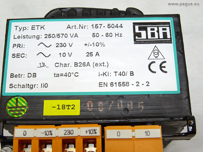 Primär: 220 V 1AC, Sekundär: 220 V 1,4 A