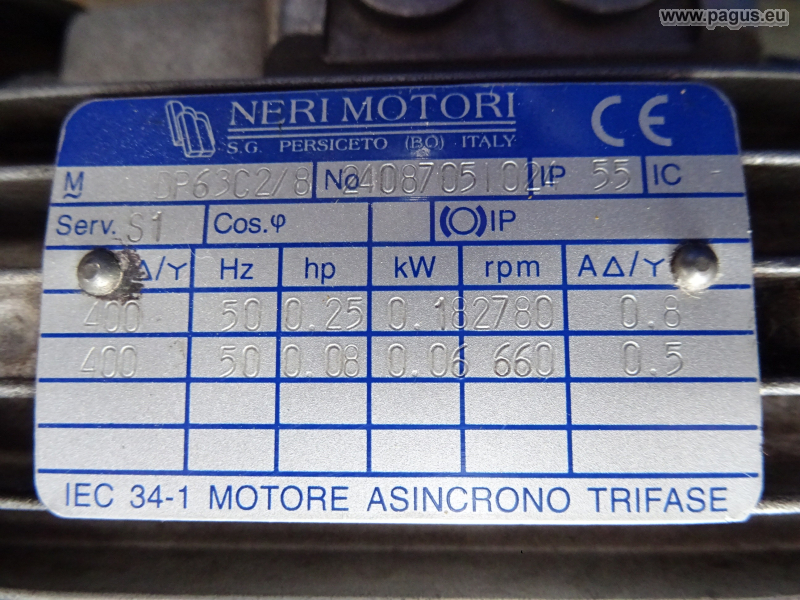 Motor: 0,18 / 0,06 kW, 400 V 3AC 50 Hz