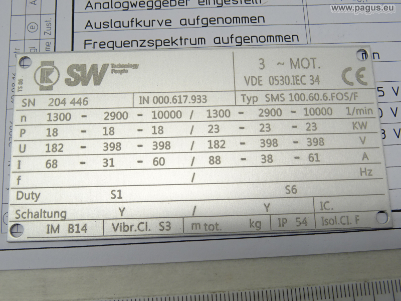 Drehzahl: 1300 / 2900 / 10000 U/min