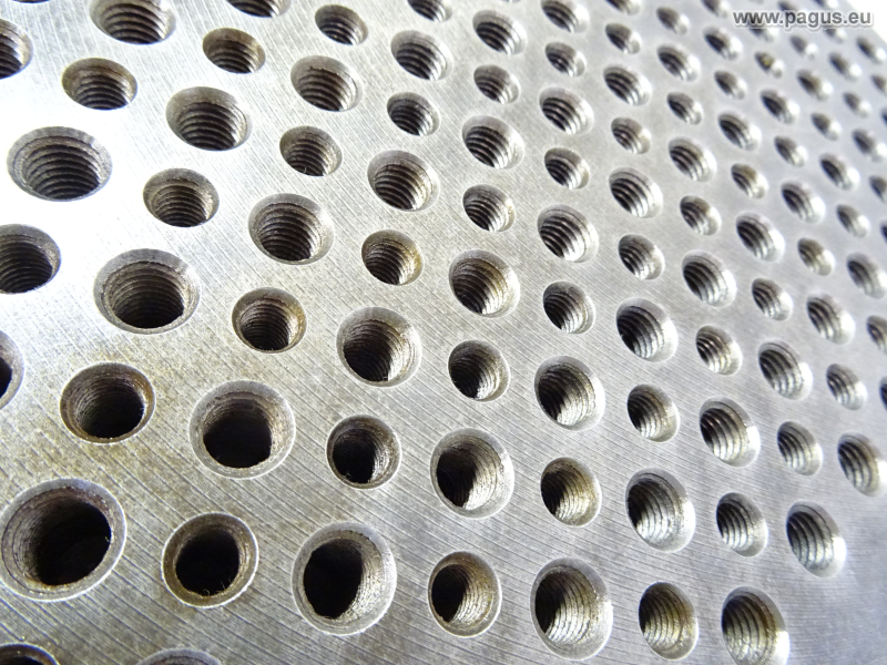8 Reihen mit je 14 Gewindebohrungen: M8 x 1,25, Tiefe: 25 mm
