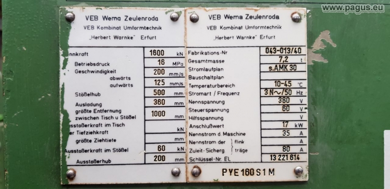 Presskraft: 160 t