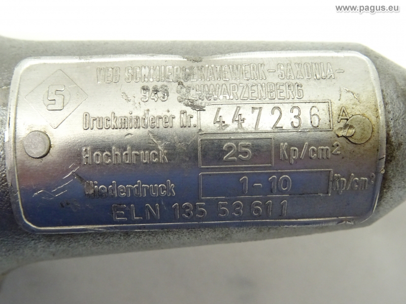 Eingangsdruck: max. 25 kp/cm² ( ca. 24,5 bar )
