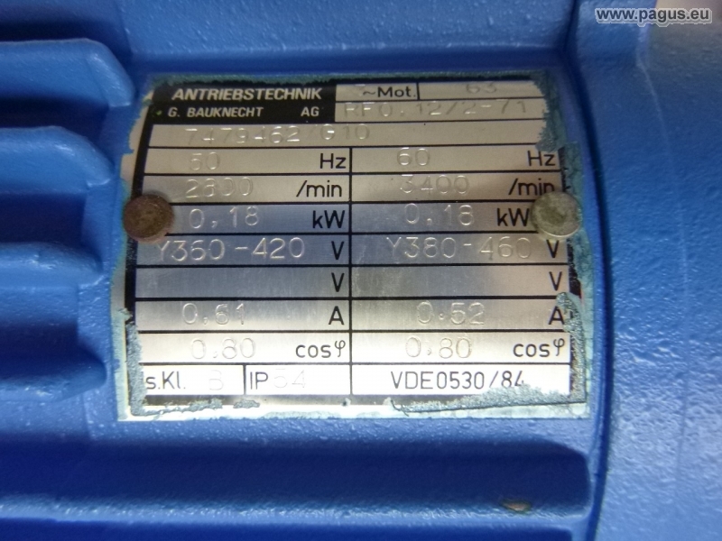 Motor: 0,37 kW, 302 U/min