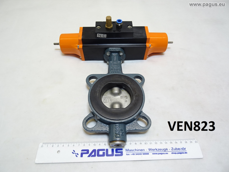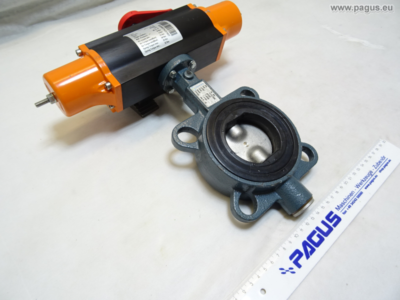 Soft-sealing intermediate valve, butterfly valve, with pneumatic drive